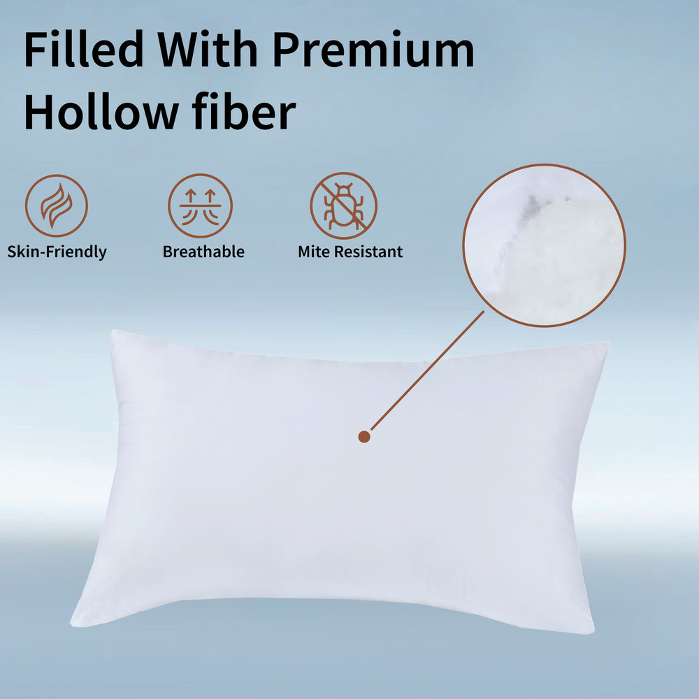 Hotel Quality Pair of Standard Hollow-fiber Filled Pillow, Breathable, Hyperallergenic, Plush Hotel-Style Down Alternative, Medium-Firm Support, Quick bounce back