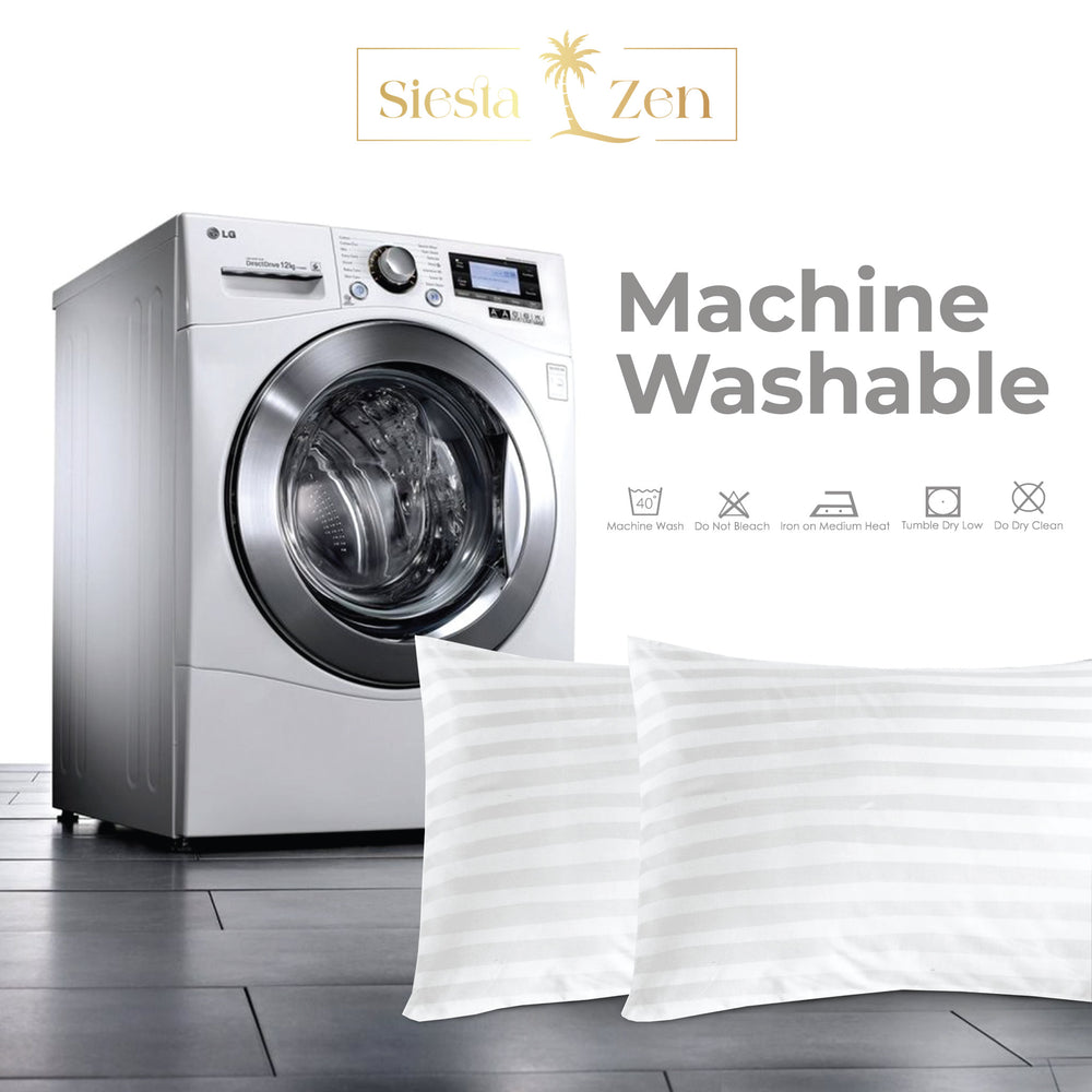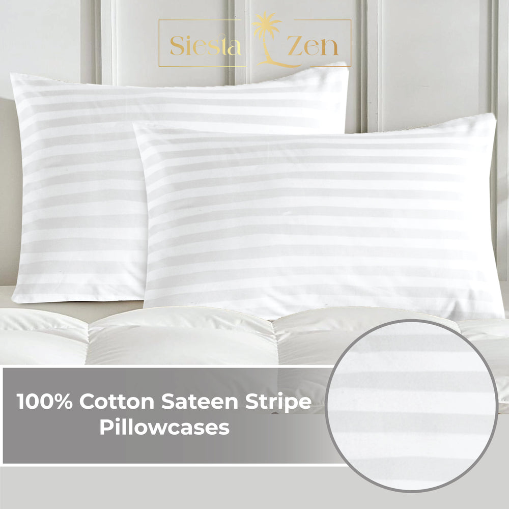 Complete your luxurious bedding experience with the Siesta Zen 100% Cotton Sateen Pillow Covers (Pair). Crafted from long-staple cotton in a silky sateen weave, these pillow covers are ultra-soft, breathable, and hypoallergenic for all-night comfort. The 2cm satin stripe design adds subtle elegance, while the hidden button closure keeps pillows secure and provides a polished, seamless look. Ideal for bedrooms, hotels, or upscale home décor, these pillow covers combine durability, style, and effortless care.