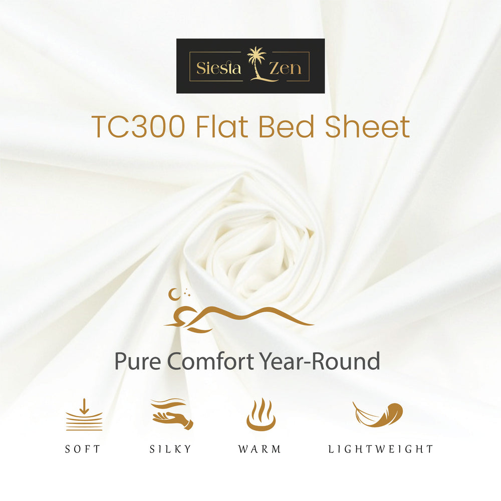 levate your sleep experience with the Siesta Zen 100% Egyptian Cotton Flat Bed Sheet, expertly crafted from premium long-staple cotton for luxurious softness and durability. Featuring a 300 thread count percale weave, this sheet offers a crisp, cool, and breathable hotel-quality feel perfect for warm sleepers and all-season comfort. With exceptional strength, fade resistance, and easy-care performance, it brings long-lasting elegance and comfort to your bedroom.