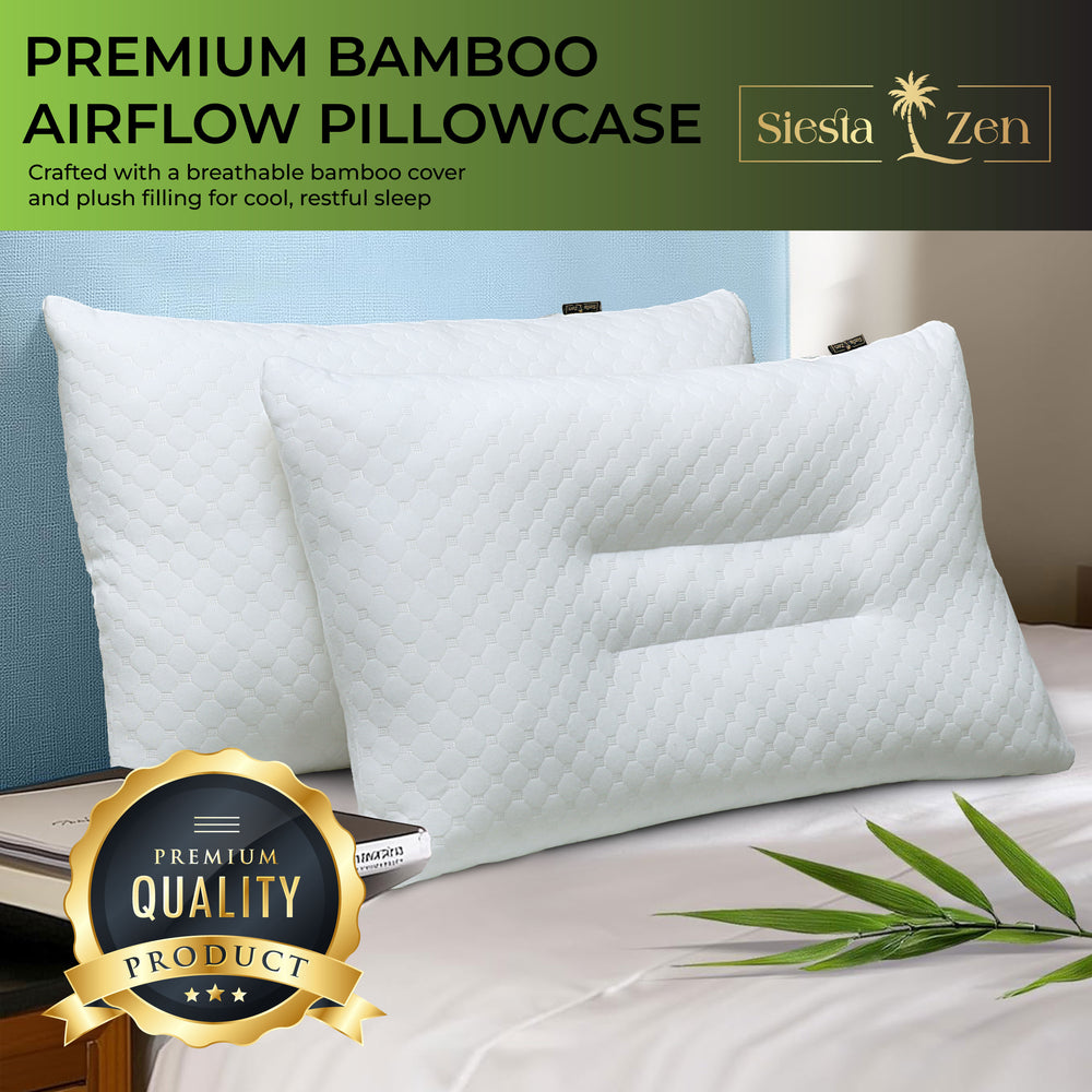 Siesta Zen Gentle Cervical Bamboo Air Flow Neck Support Pillow Filled with Vergin Hollowfiber Odorless, Ergonomic Contour Design for Neck & Spine Alignment Soft, Hypoallergenic (2, Standard Size)