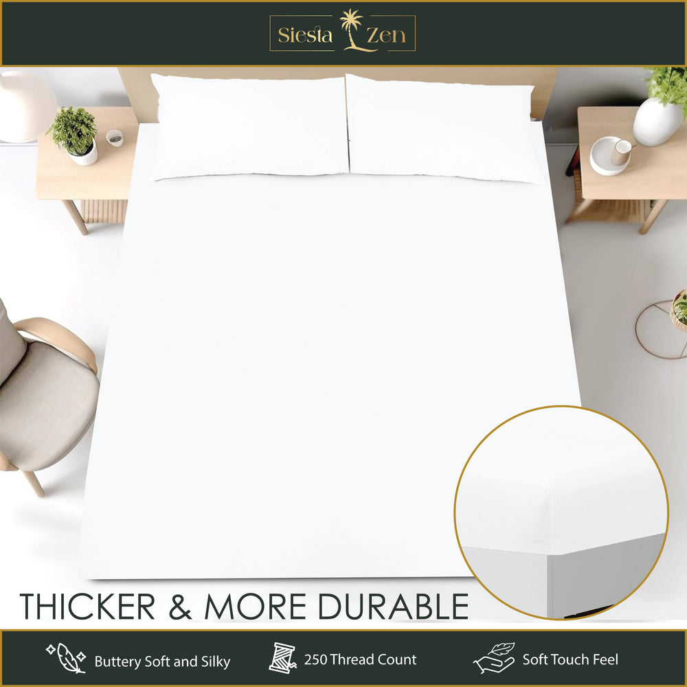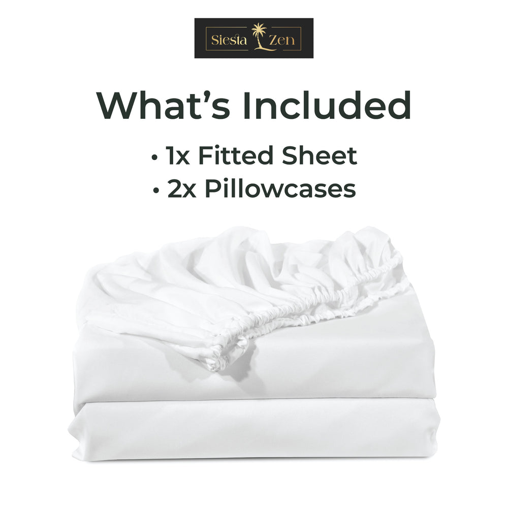 Upgrade your sleep with the Siesta Zen 3-piece fitted sheet set, crafted from TC 250 cotton-rich fabric for softness, breathability, and long-lasting comfort. Includes 1 fitted sheet with a 30cm deep pocket and 2 pillowcases.